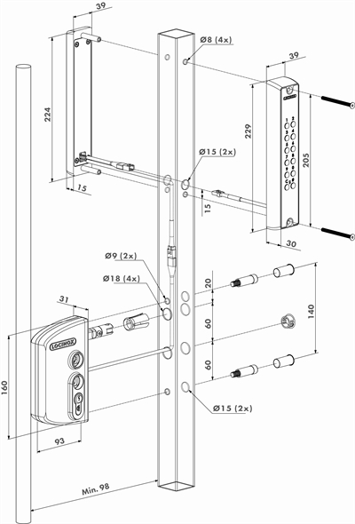 – Kan udskiftes med alle Locinox låse og passer inden for højden/bredden af LA låsen
